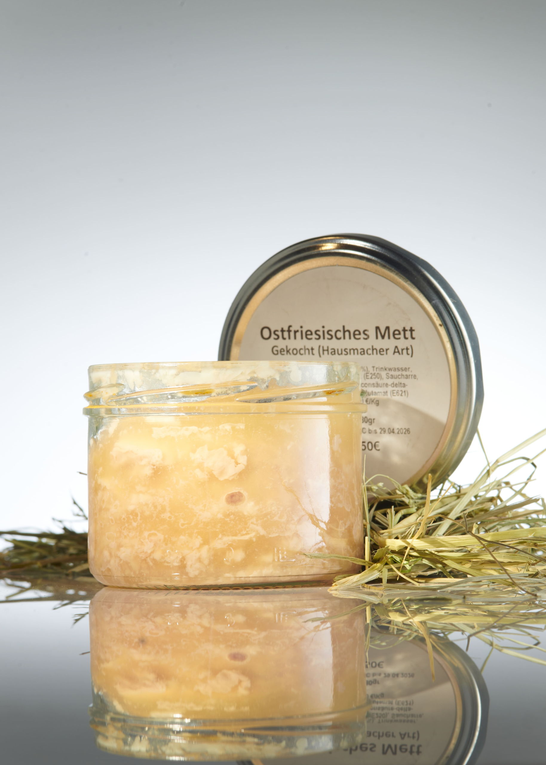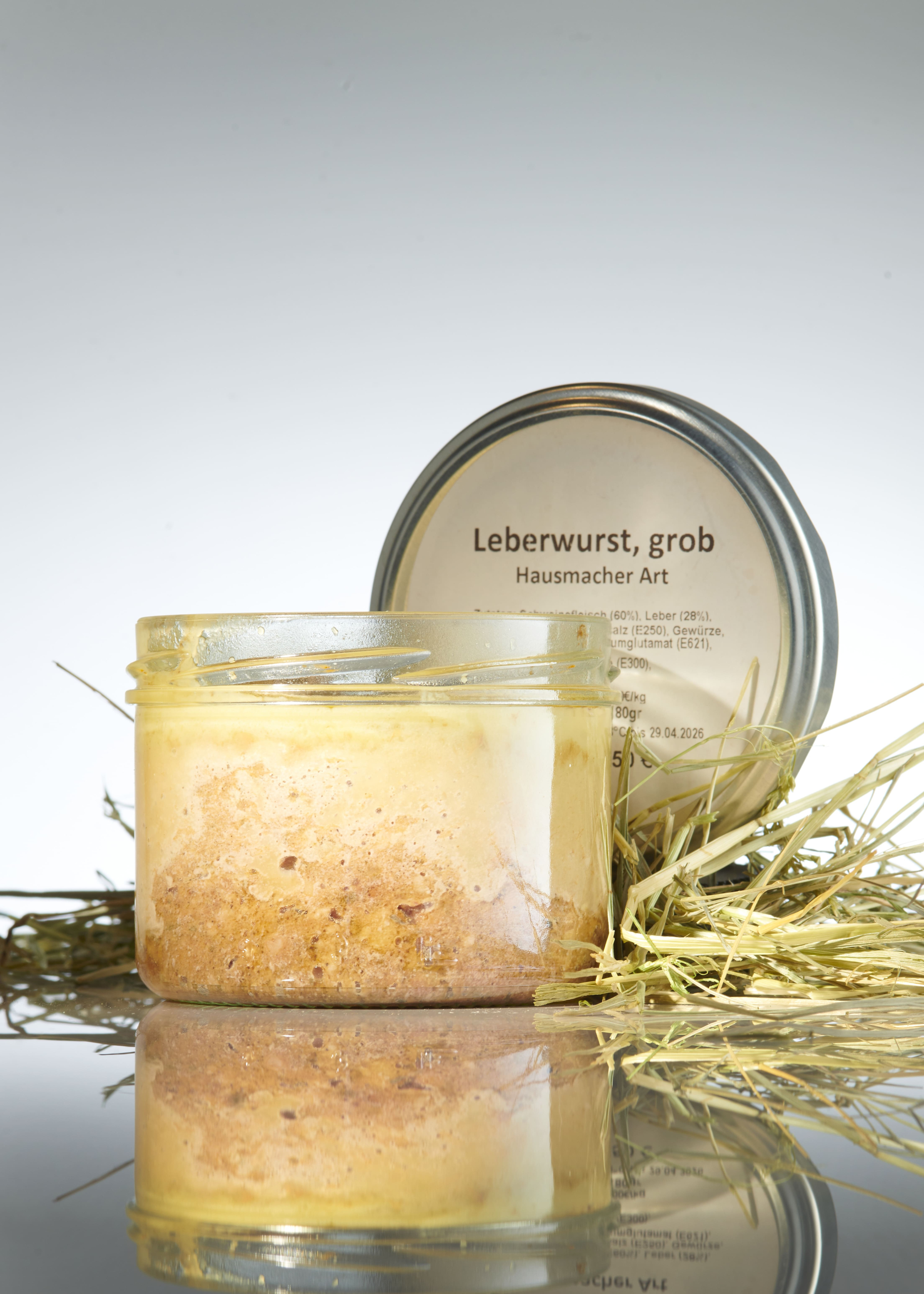 Wählt zwischen Mettwurst „Hausmacher Art“, Leberwurst „Hausmacher Art“, Alte Pomeranze (0,2 l) oder Quitten-Gelee oder Apfel-Gelee.